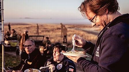 Op het terrein kunt u eten en drinken kopen. In de ochtend kunt u een traditioneel Engels ontbijt kopen. De horecapunten zijn te vinden op het Pegasusplein, Airborneplein, bij de bushalte langs de N224 en bij de fietsparkeerplaatsen. Ook kunt u voor eten en drinken naar restaurant Juffrouw Tok.