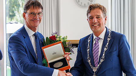 Vrijdag 5 september heeft Gerrit Hagelstein de erepenning van de gemeente Ede ontvangen. Burgemeester René Verhulst reikte deze gemeentelijke onderscheiding uit tijdens het afscheid van Gerrit als Griffier van de gemeente Ede.